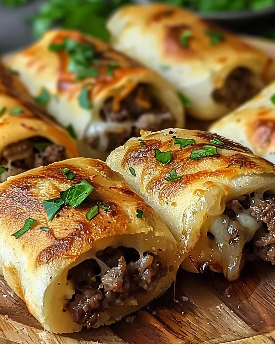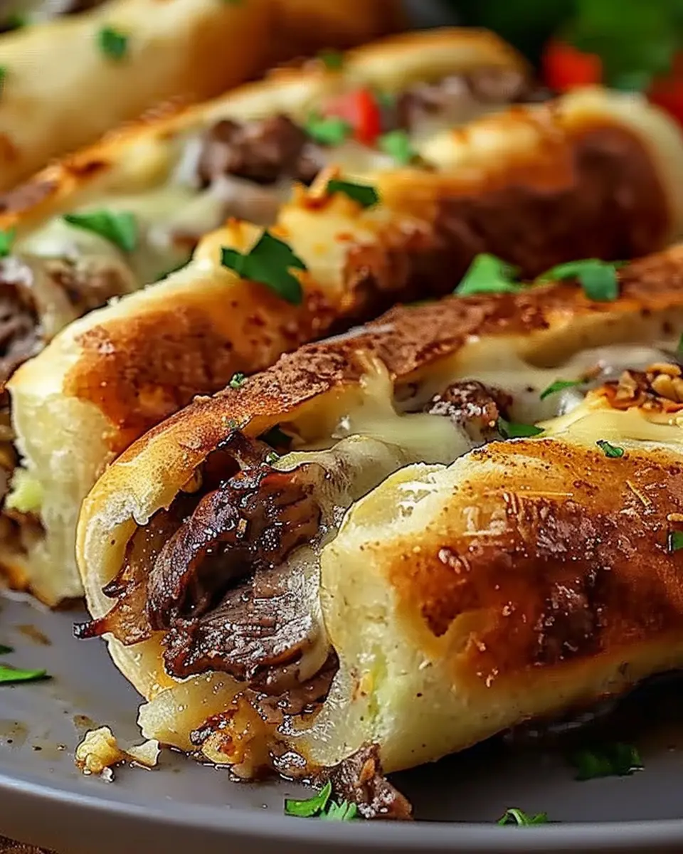 PrintIrresistible Keto Philly Cheesesteak Rolls with Turkey Bacon Delight