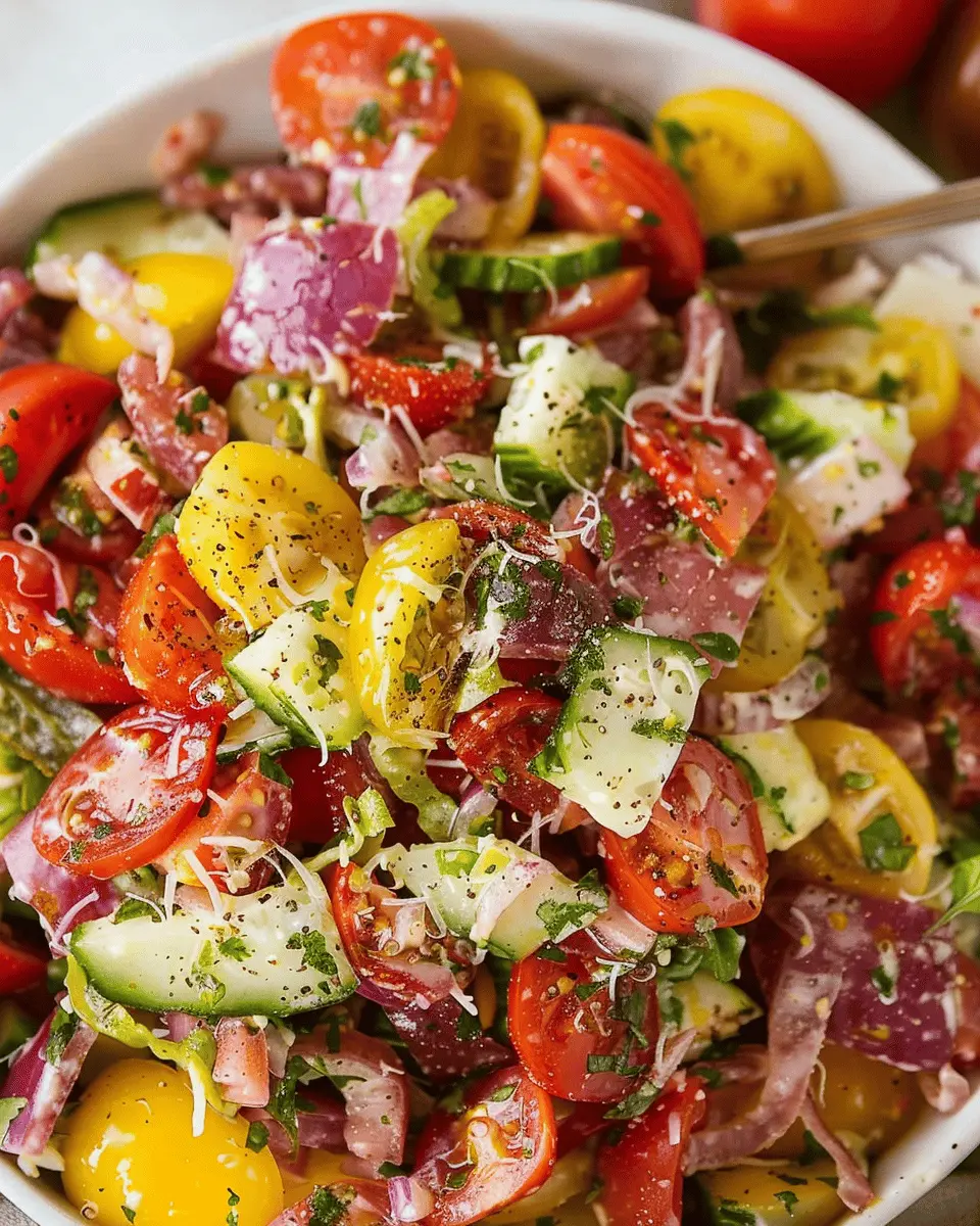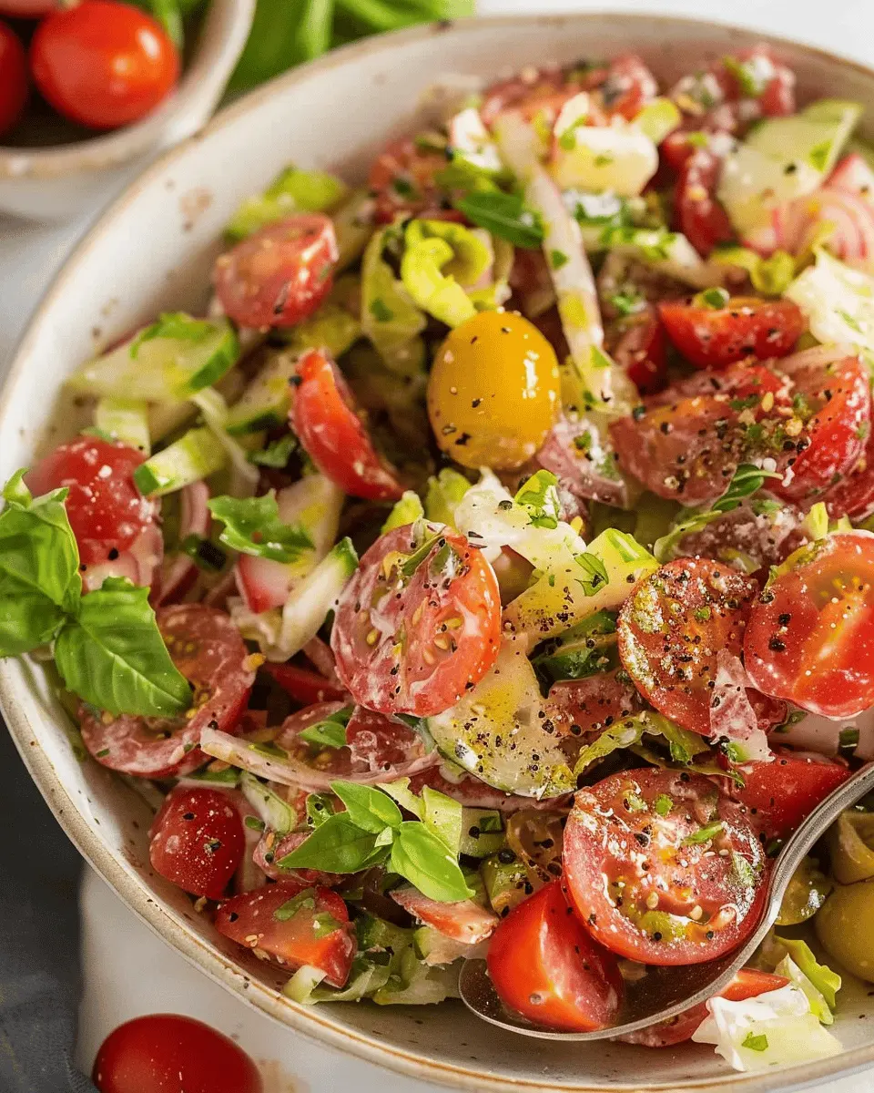The Italian Grinder Salad is a vibrant, satisfying dish that epitomizes the rich flavors of Italian cuisine, combining hearty ingredients into a delightful salad. Think of it as a perfect blend of crisp vegetables, savory proteins, and tangy dressings that not only delights the palate but also nourishes the body. Mostly enjoyed as a standalone meal, this salad is versatile enough to serve as a side at gatherings or picnics.