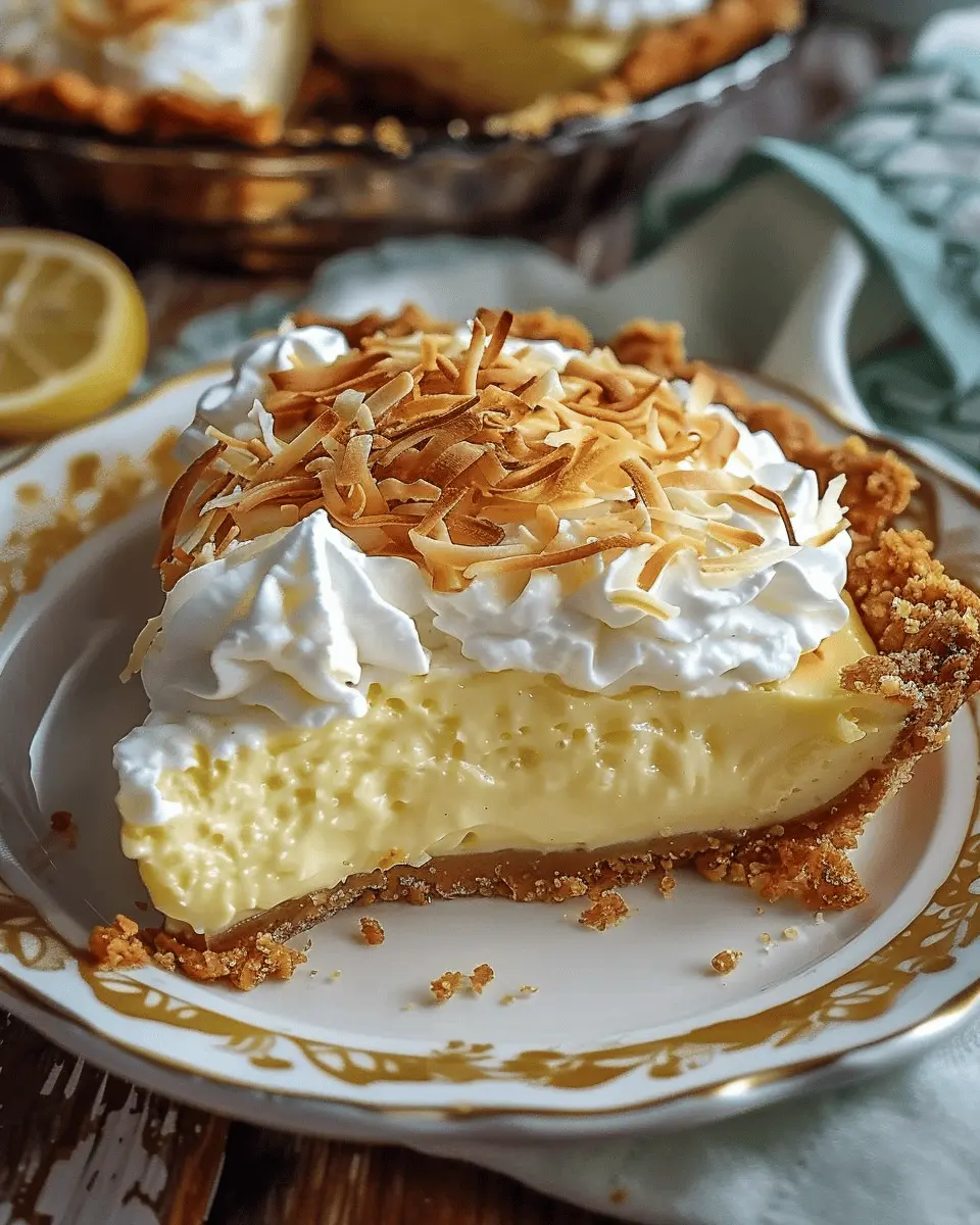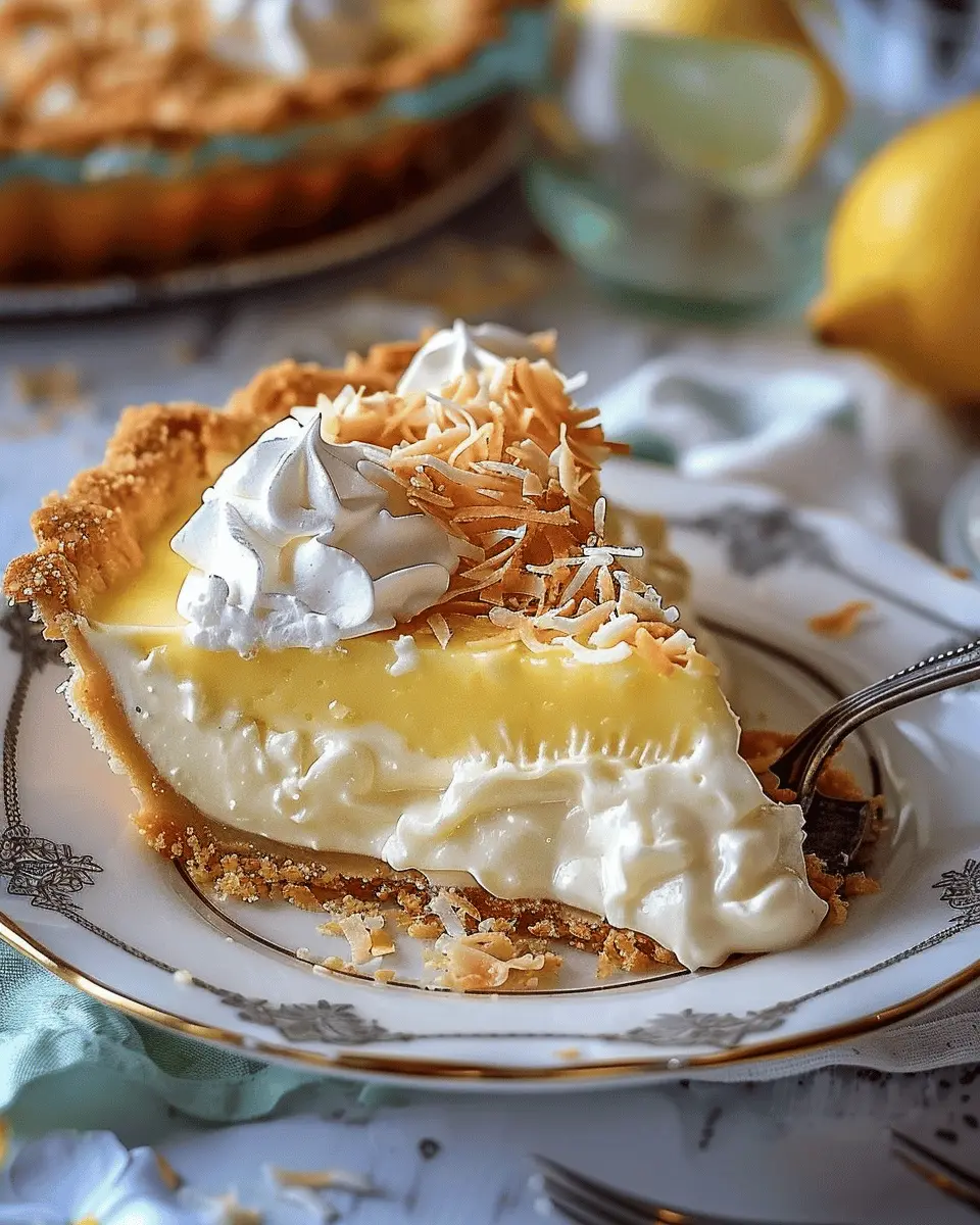 Consider serving your lemon coconut cream pie with a sprinkle of toasted coconut flakes or crushed graham crackers on top. This adds a delightful crunch that contrasts beautifully with the smooth filling.