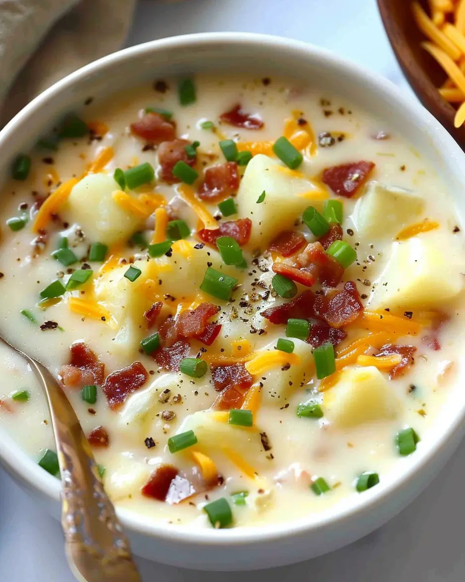 PrintLoaded Potato Soup: Easy Comfort Food with Turkey Bacon Twist