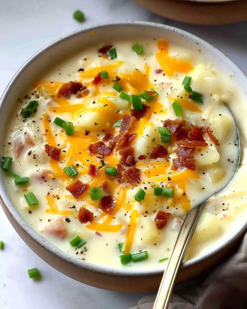 In wrapping up our journey through the loaded potato soup recipe, it’s clear that this dish brings comfort and warmth to any table. Imagine curling up with a bowl of creamy goodness, topped with turkey bacon and chicken ham, creating the perfect balance of flavors and textures. This soup not only satisfies your taste buds but is also adaptable—feel free to customize it to meet your preferences.