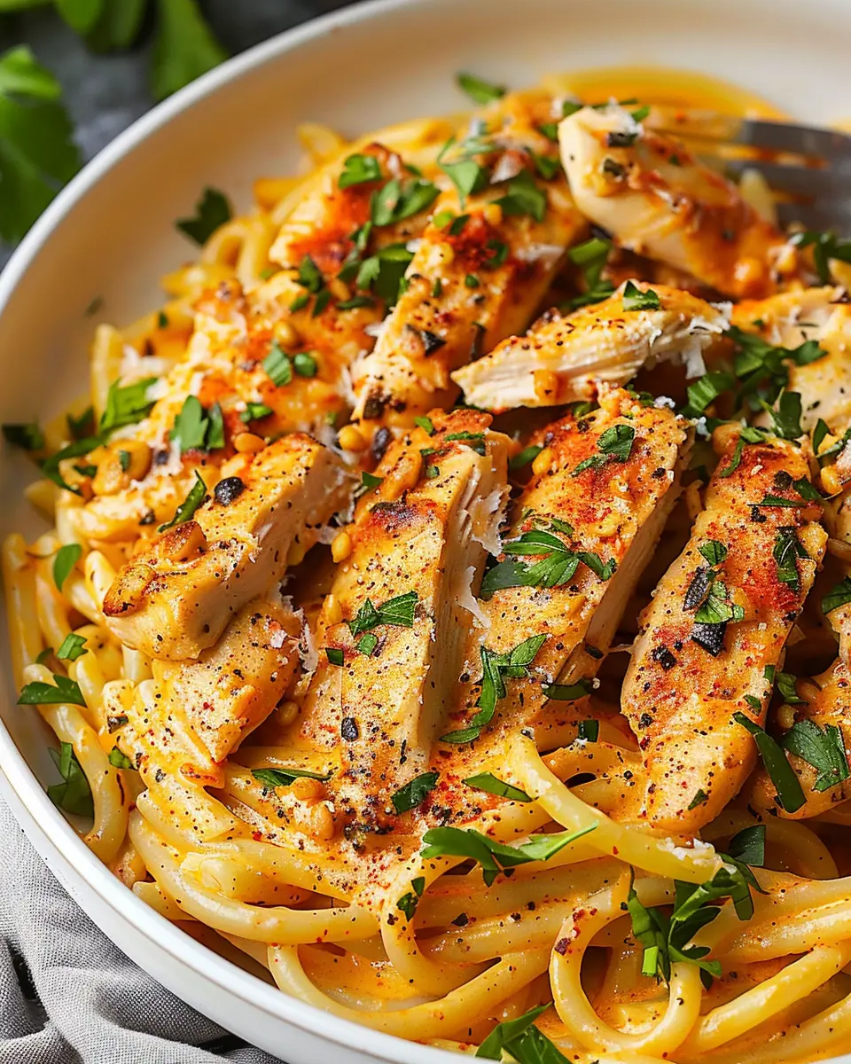 Versatile: One of the best things about this pasta dish is its versatility. Feeling adventurous? Swap out the chicken for shrimp or toss in your favorite veggies. The possibilities are endless, making it easy to tailor the recipe to fit your preferences or dietary needs.
