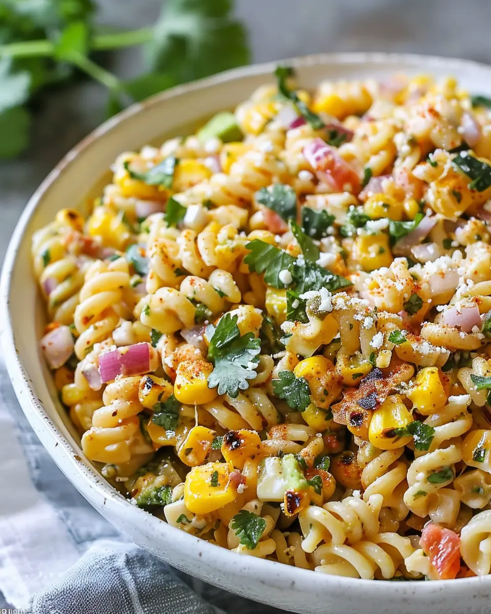 A vibrant and refreshing take on pasta salad, loaded with the flavors of Mexican street corn.