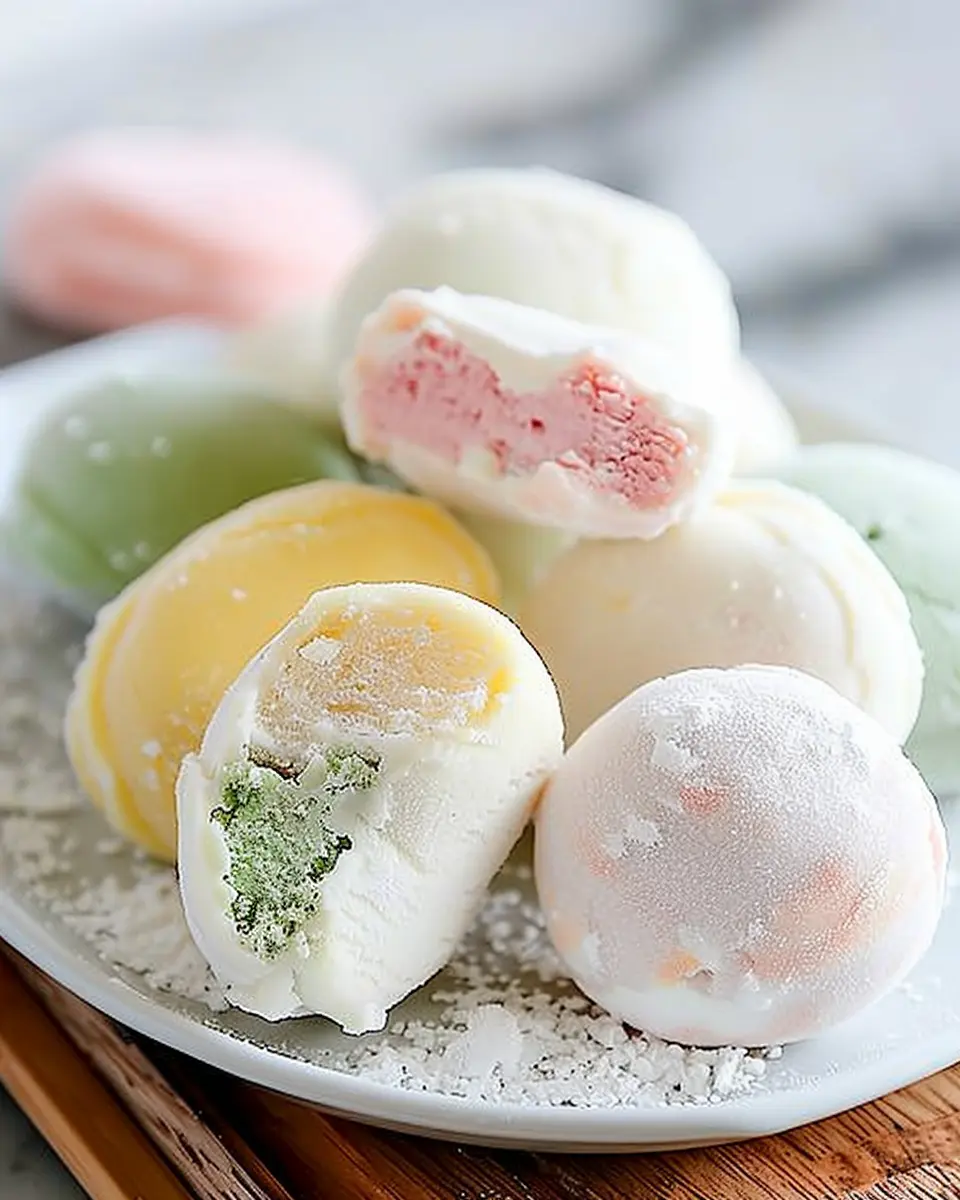 There’s something magic about combining textures: envision a chewy mochi shell bursting with juicy fruit alongside creamy ice cream. If you’re feeling adventurous, try adding some homemade sweetened red bean paste or a drizzle of chocolate sauce for an extra indulgent surprise.