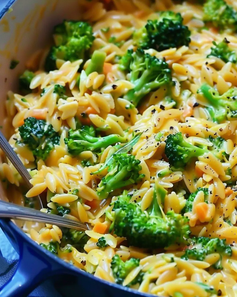 Keywords: One Pot Cheesy Orzo, comfort food, easy recipes, broccoli dish