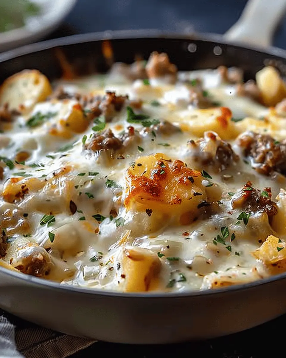 Absolutely! The beauty of this One-Pan Cheesy Meat and Potato Skillet is its versatility. While beef is a classic choice for its rich flavor, you can easily swap it out for grilled chicken, turkey bacon, or even plant-based protein like lentils or chickpeas. If you decide to go lighter with chicken, you may need to adjust the cooking time slightly to ensure it’s cooked through.