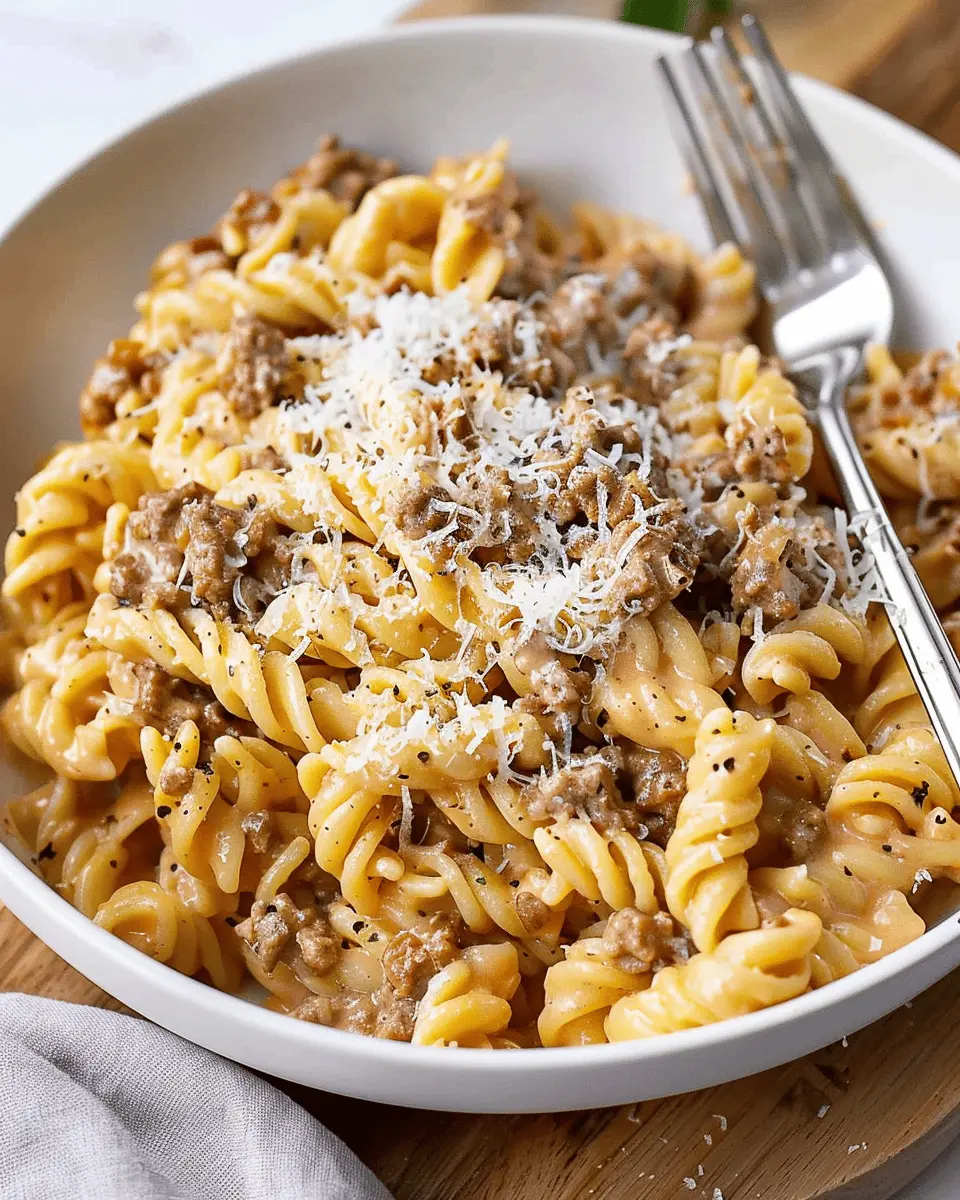 Keywords: One-Pot Creamy Ground Beef Pasta, easy pasta recipes, comfort food