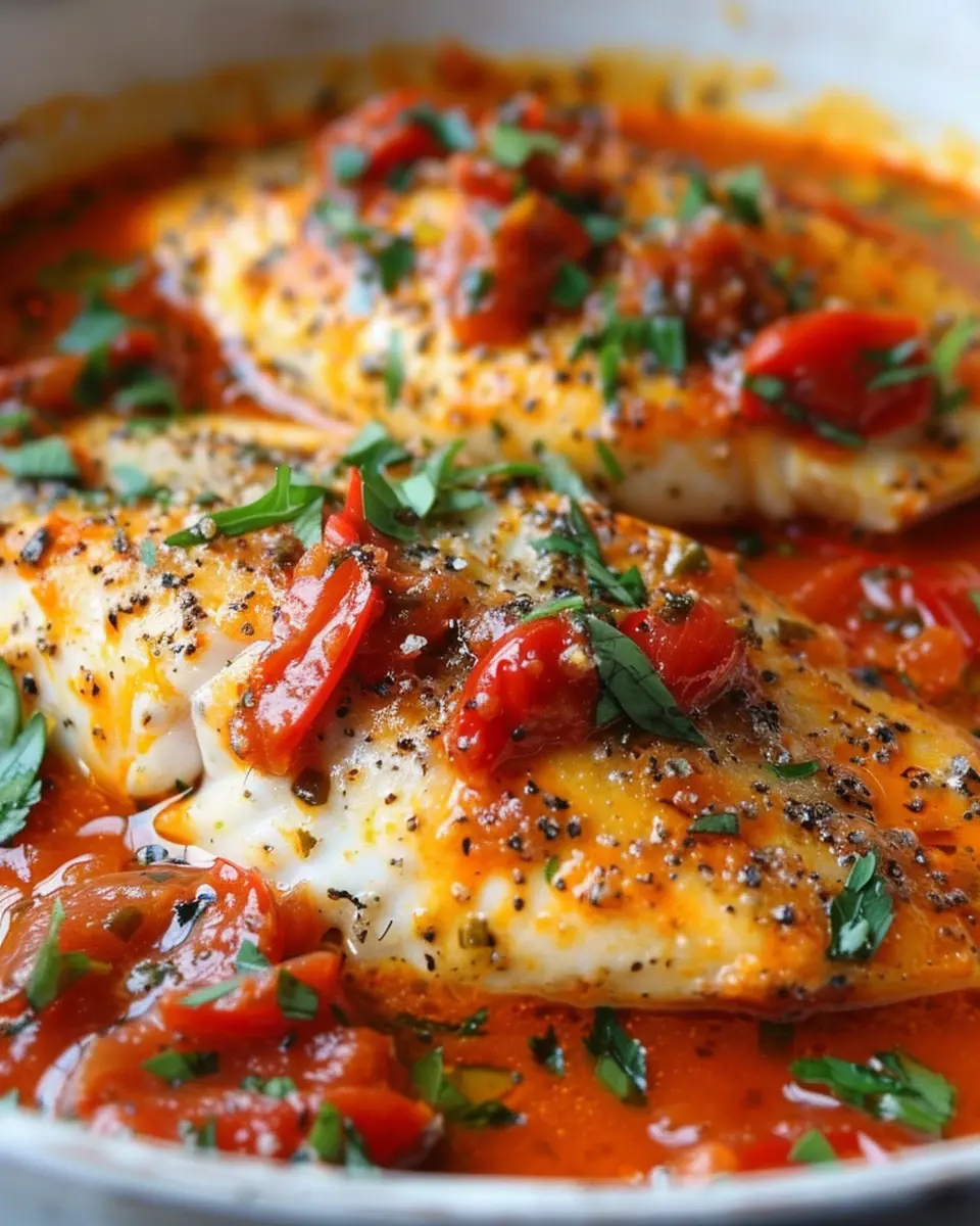 Keywords: Parmesan Crusted Tilapia, Roasted Red Pepper Sauce, Easy Recipe