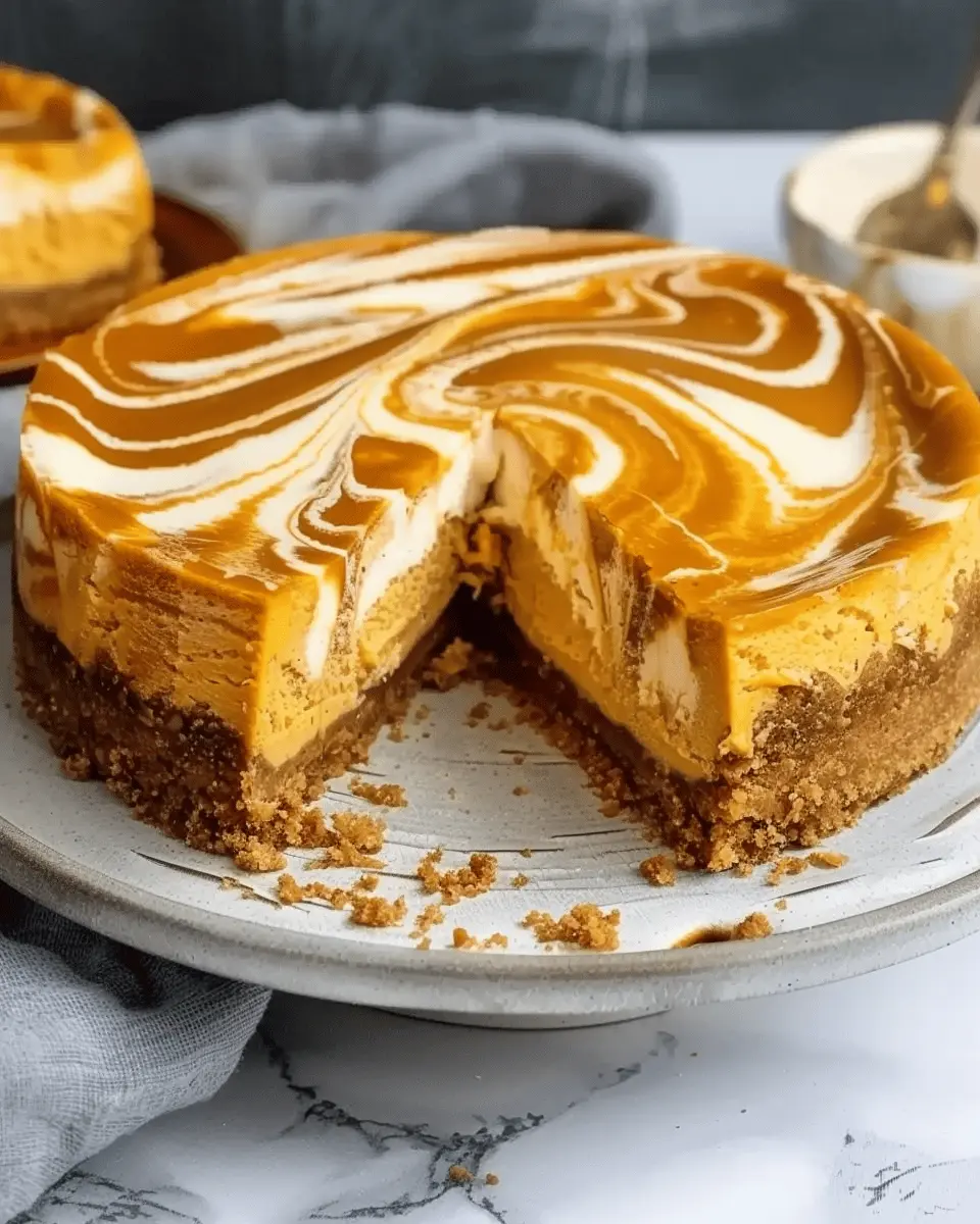 This Pumpkin Swirl Cheesecake is the ultimate fall dessert, combining rich pumpkin flavors with a creamy cheesecake base.