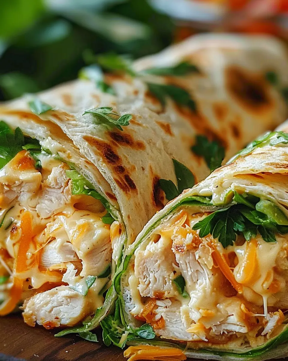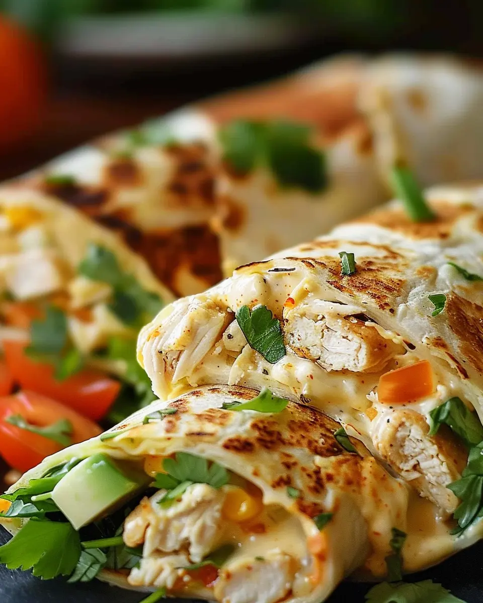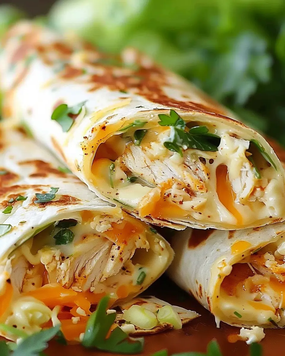 A delicious and quick recipe for cheesy chicken wraps that are perfect for busy days.
