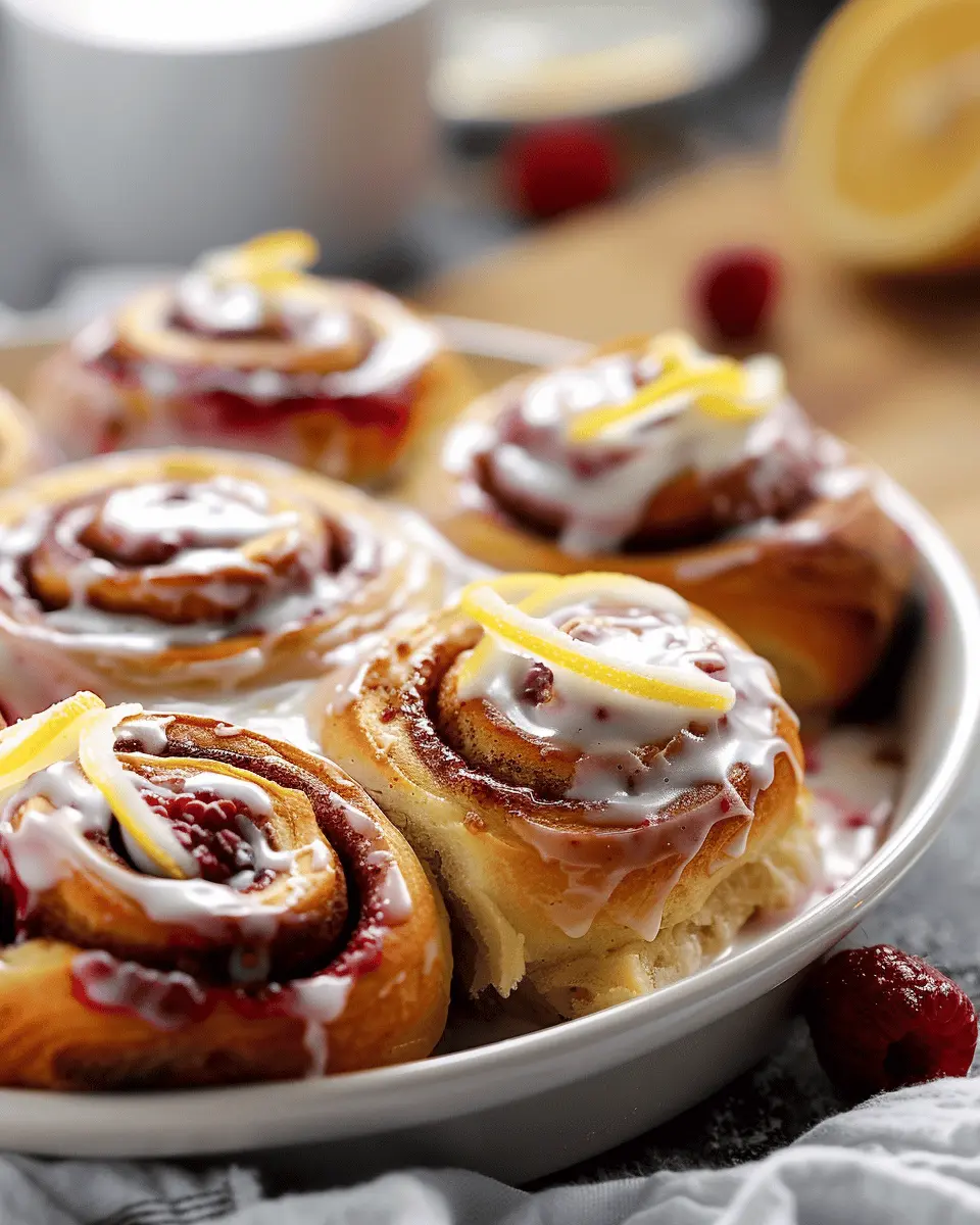 Delve into the delicious world of raspberry cinnamon rolls topped with a zesty lemon glaze. Perfect for breakfast or as a sweet snack!