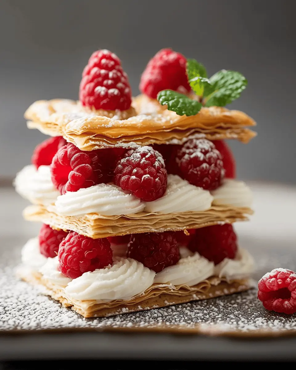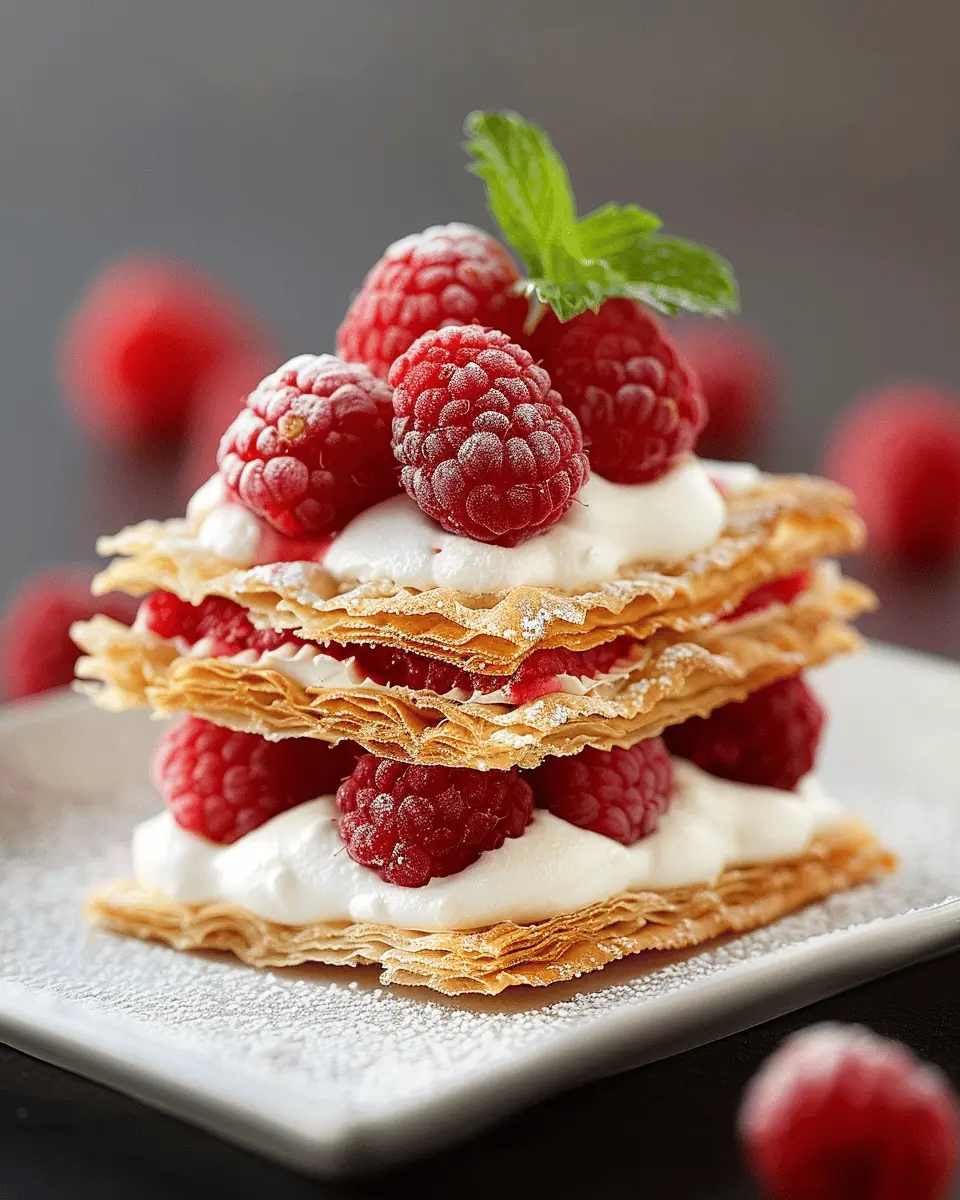Creating your own Raspberry Mille-Feuille Cookies not only indulges your sweet tooth, but it also fills your kitchen with the delightful aroma of baked goodness. Each layer you build speaks to the joy of homemade baking—an art that adds a personal touch to every bite. Imagine surprising your friends at a gathering with these elegant treats; their faces will light up as they taste the combination of flaky pastry, fresh raspberries, and creamy filling.