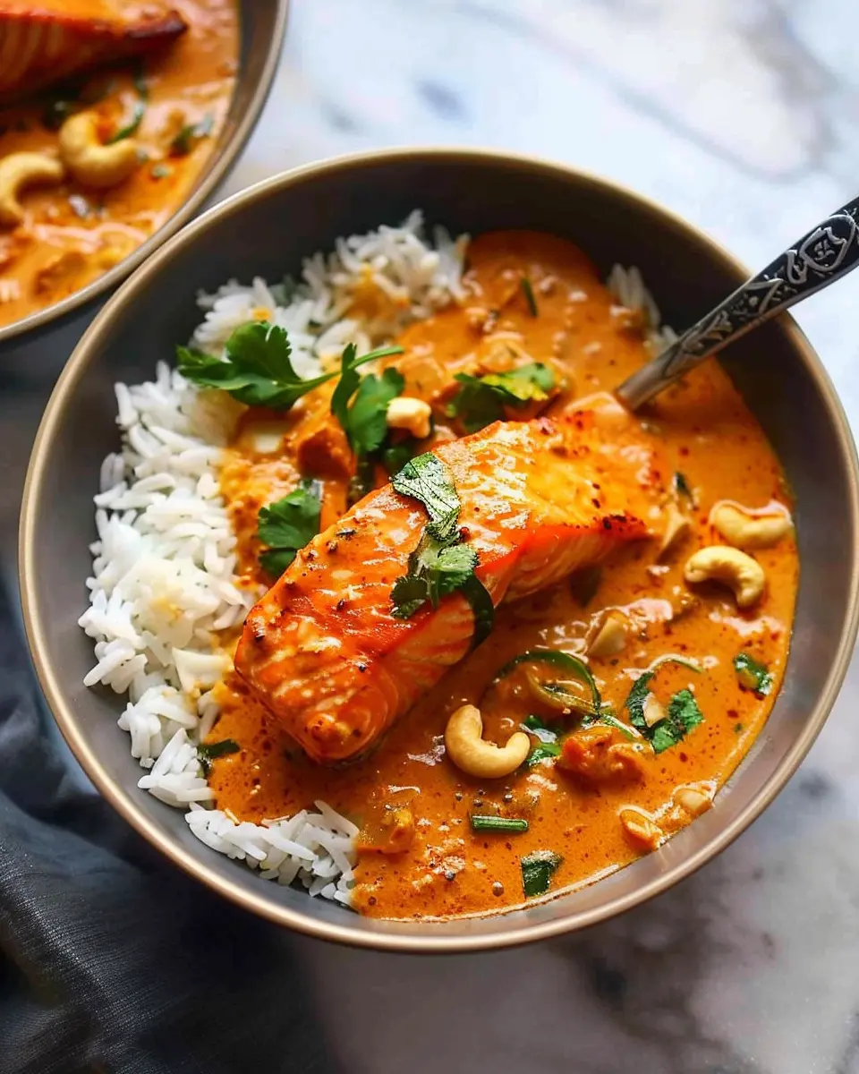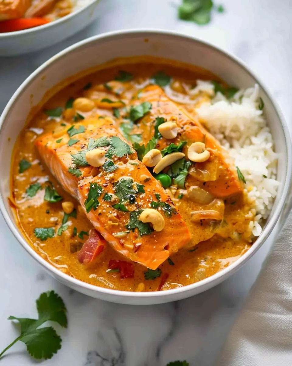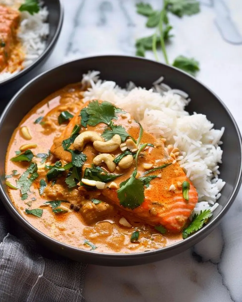 PrintSalmon Curry: Indulgent Recipe with Creamy Thai Coconut Cashew Sauce