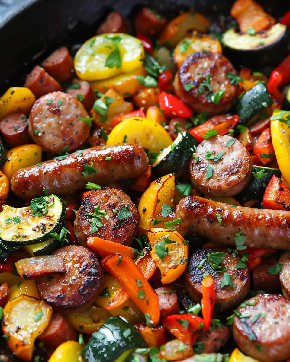 PrintSausage and Veggies Skillet: Easy One-Pan Dinner Delight