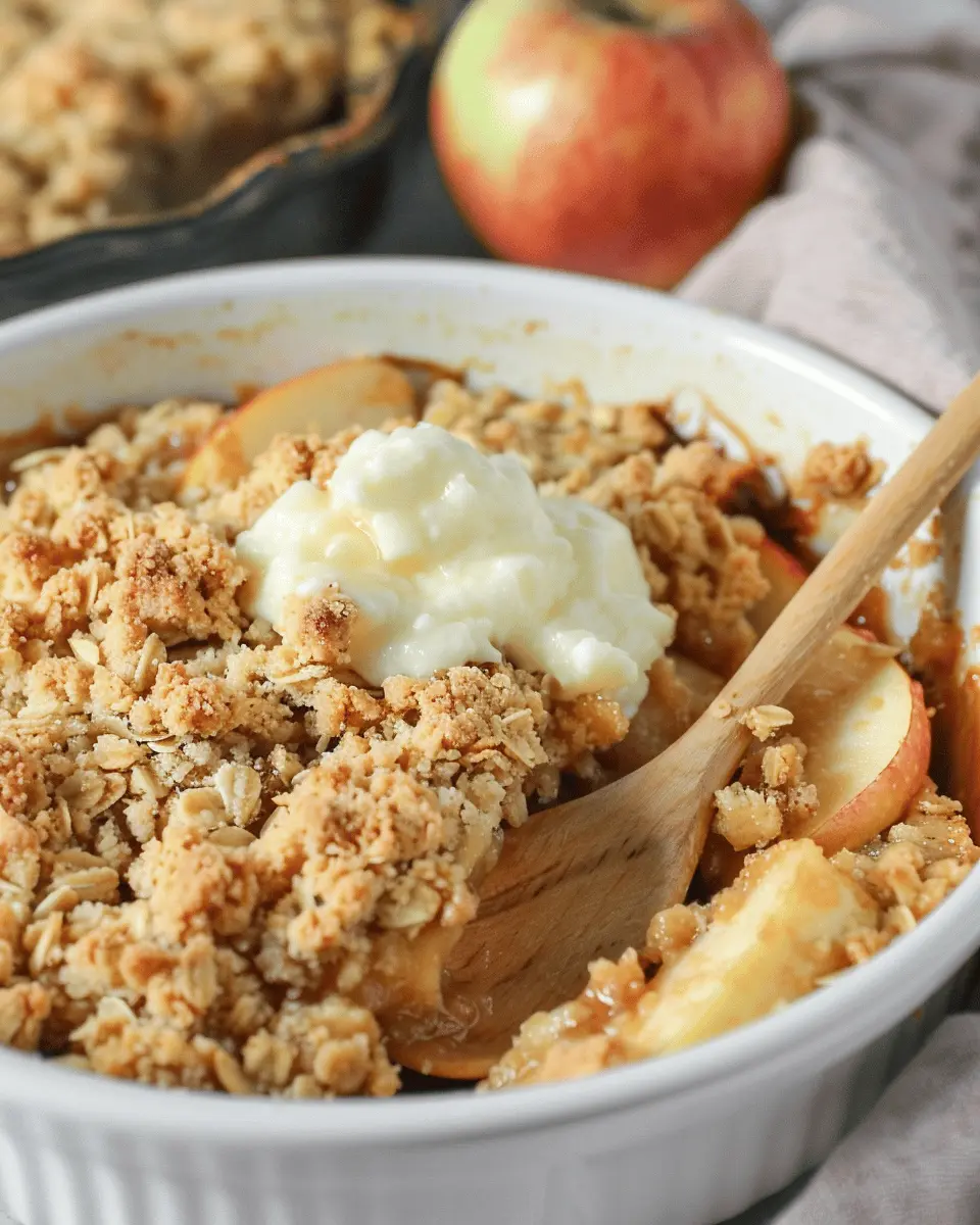 A scoop of vanilla ice cream or a dollop of freshly whipped cream on top of your warm crumble can melt perfectly into the dessert, adding a creamy contrast to the tender apples. Consider trying cinnamon or caramel-flavored ice cream for an extra twist!