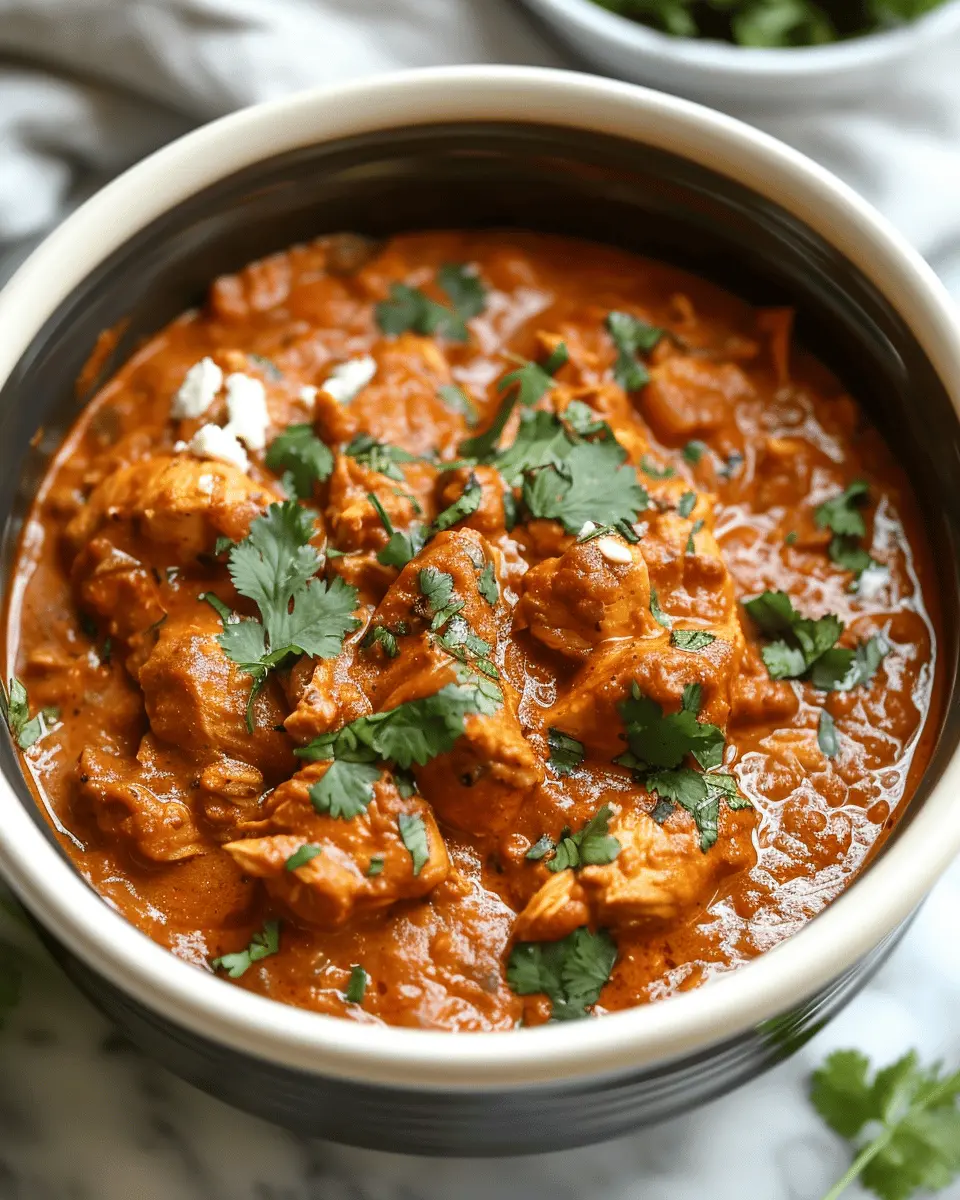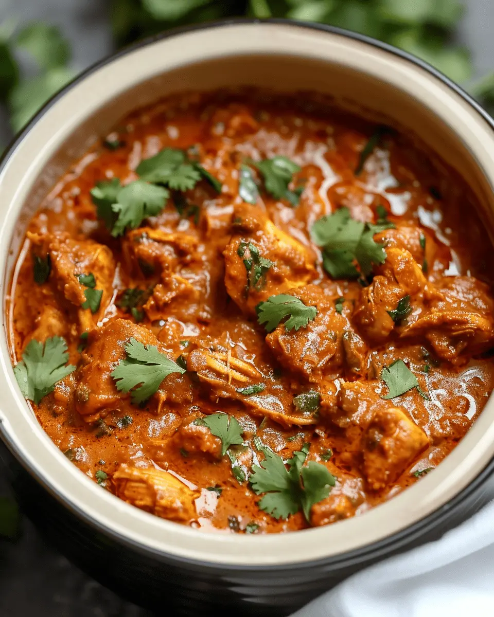 Imagine coming home after a long day, greeted by the aromatic scent of spices that fill your kitchen. The slow cooker has done all the hard work for you while you’ve been out conquering the world. Just picture it: tender chicken simmering in a rich, creamy tomato sauce infused with spices like garam masala, cumin, and turmeric. The combination creates a comforting warmth that’s hard to resist.