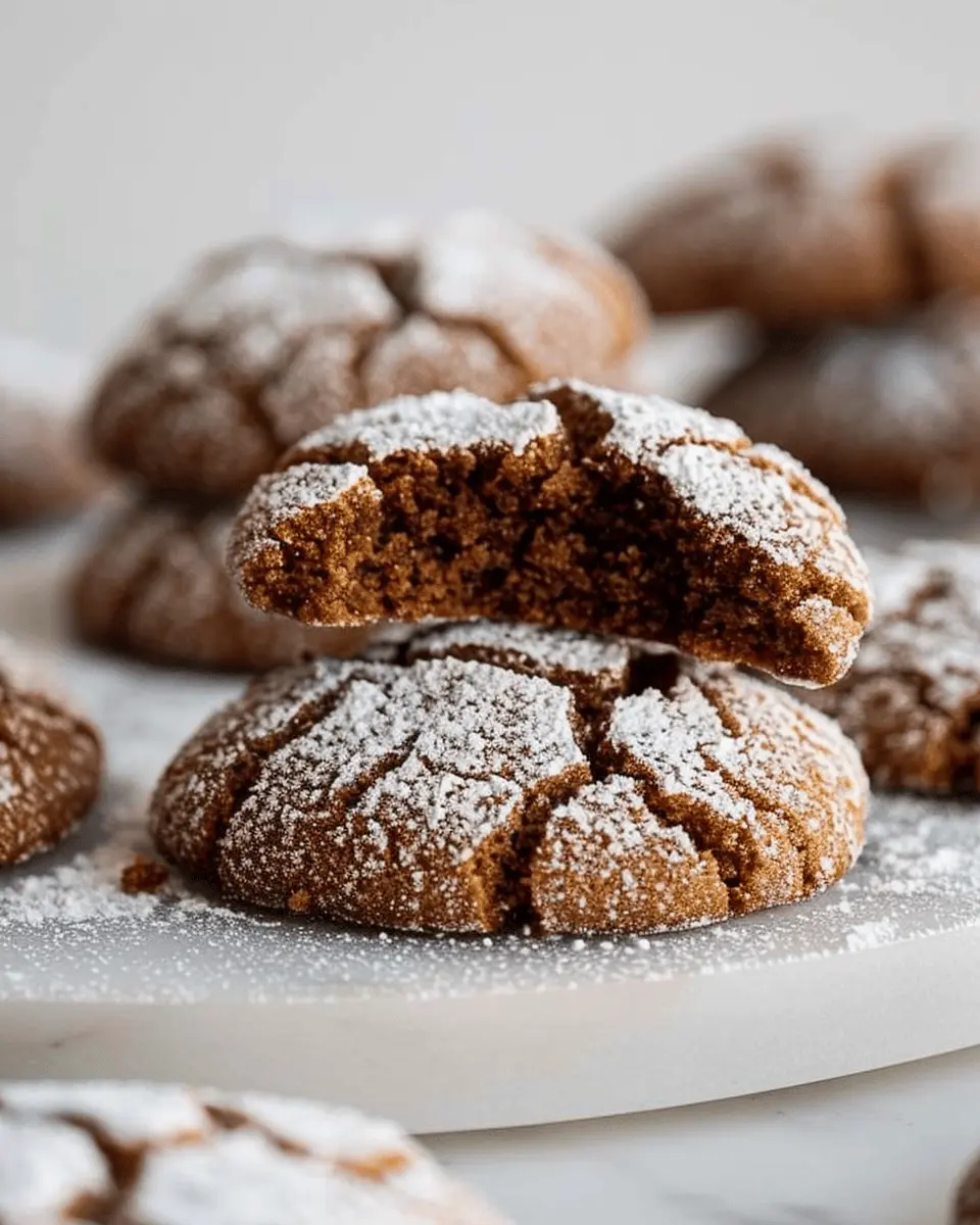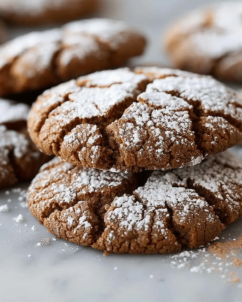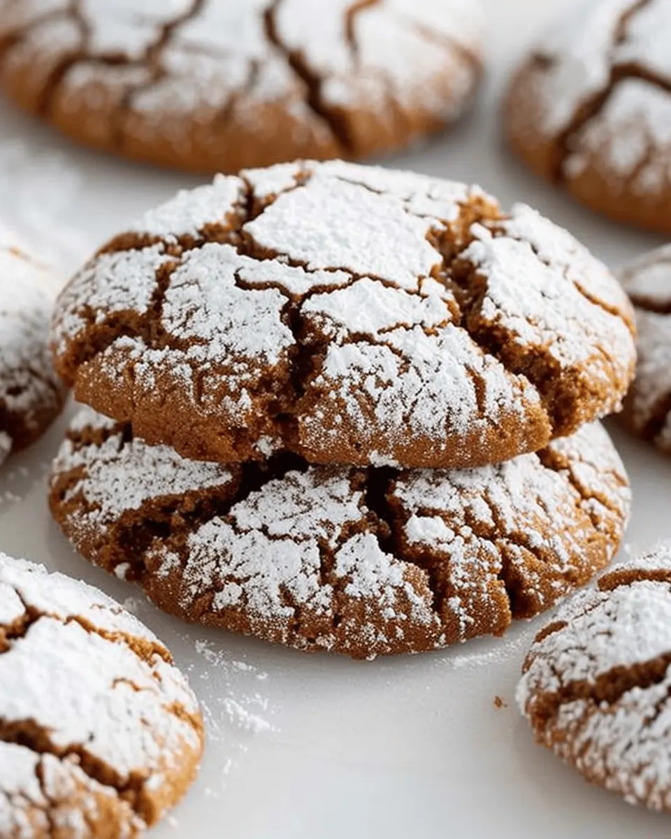 A warm and delightful recipe for soft and spiced gingerbread crinkle cookies, perfect for cozy gatherings.