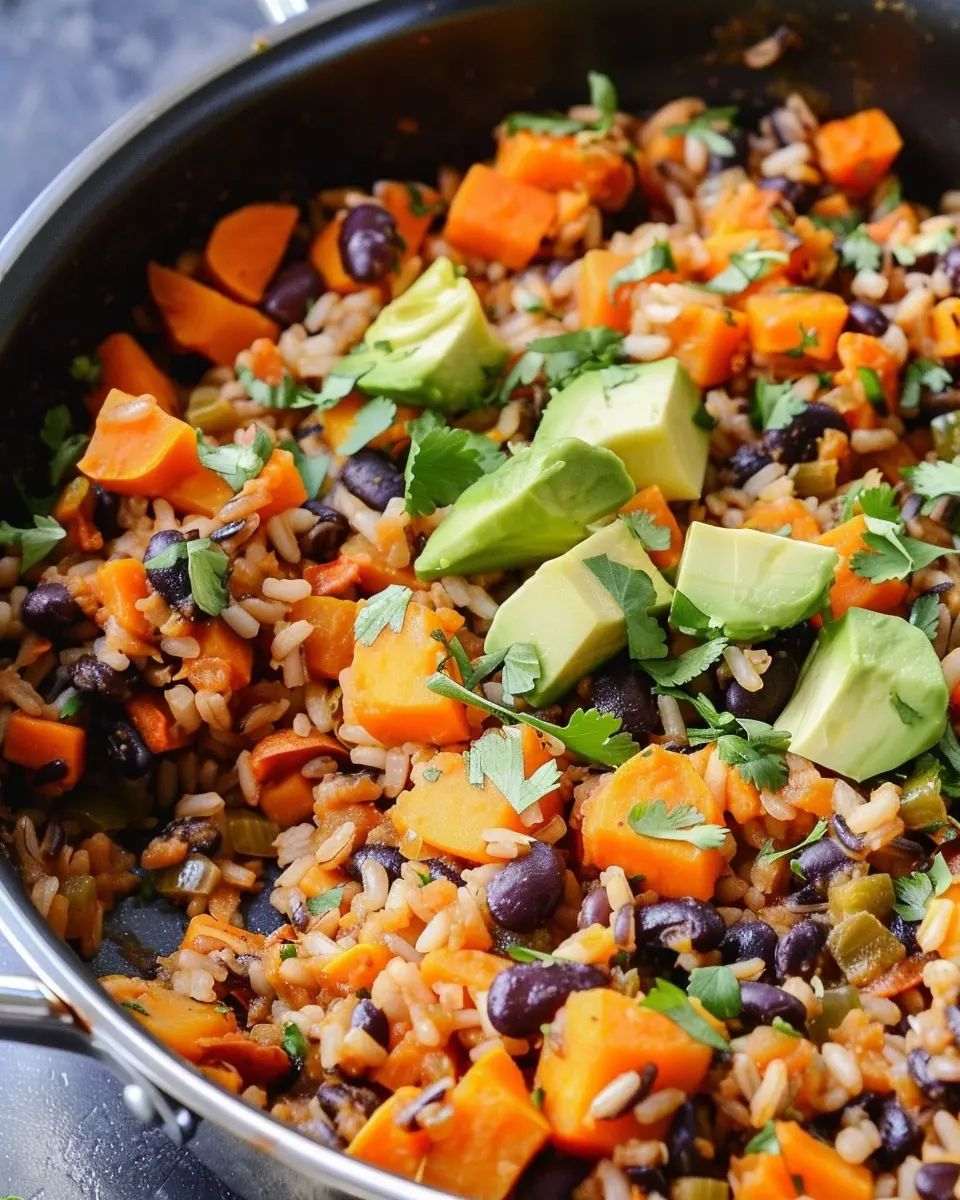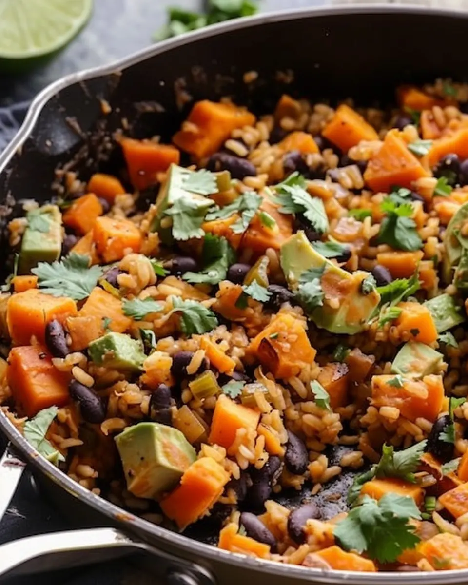 This Southwest Sweet Potato and Black Bean Rice Skillet is a delicious, easy-to-make meal that is packed with flavor and nutrition.