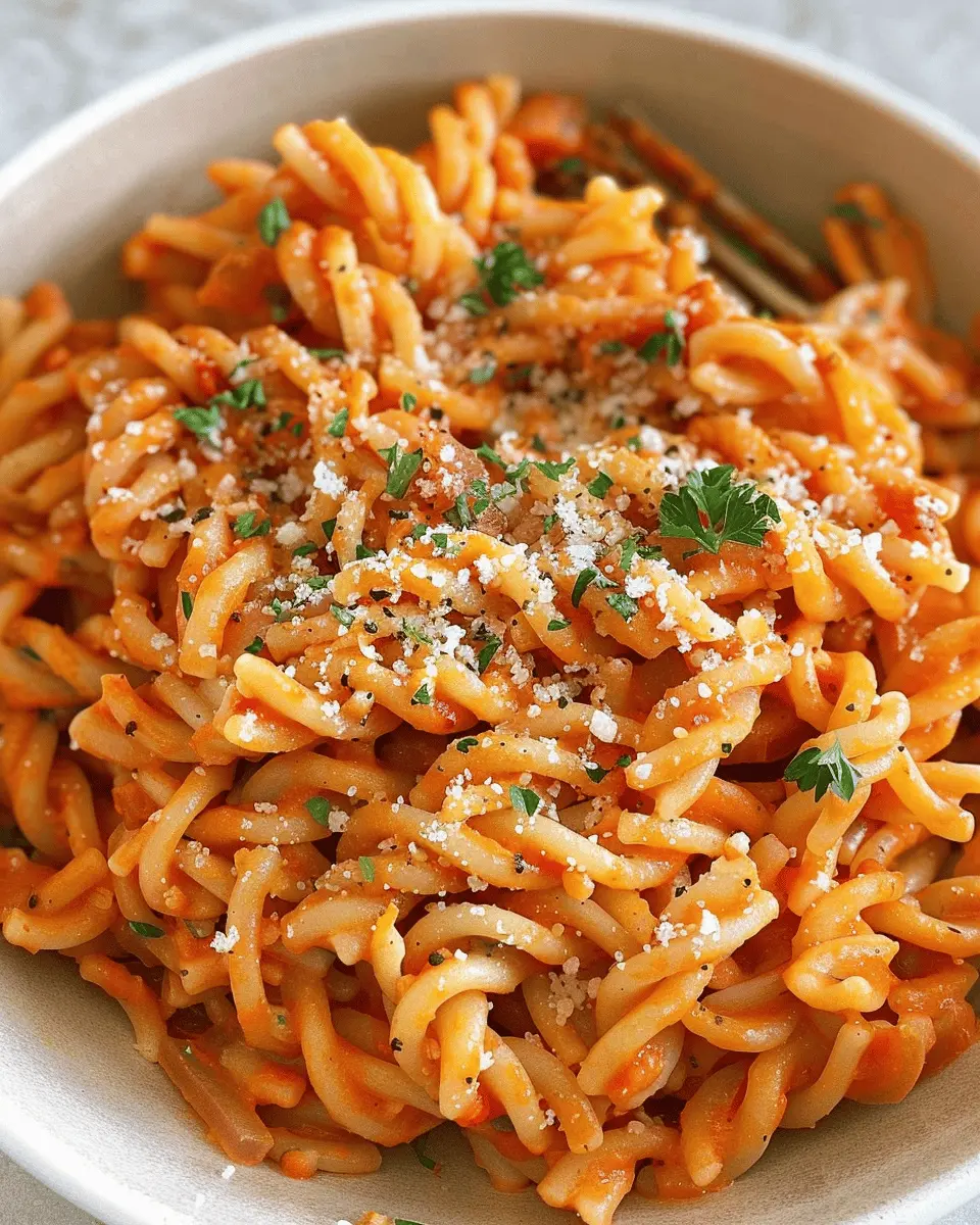 For an extra touch, stir in some grated Parmesan cheese until it melts into the sauce. This step truly elevates your spicy tomato pasta and adds a wonderful creaminess. Serve hot, garnished with fresh basil or parsley for that burst of color and flavor!