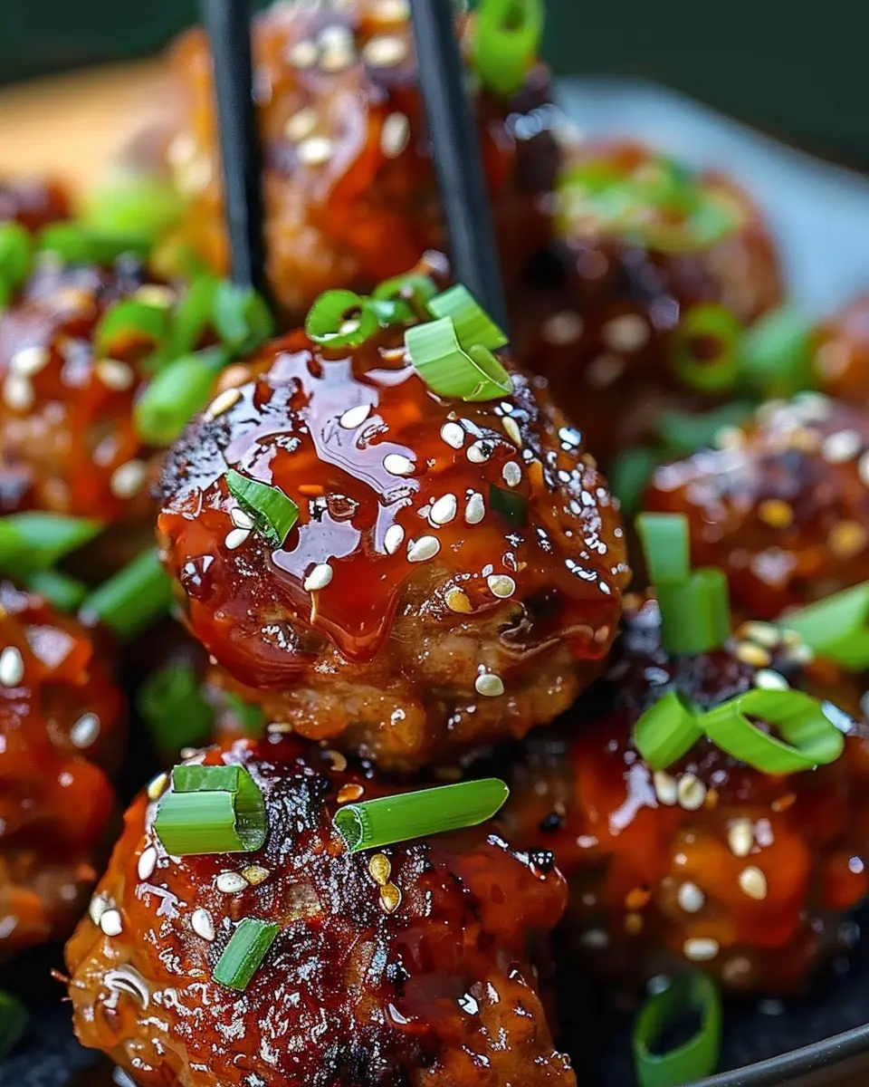 PrintSticky Korean BBQ Meatballs with Gochujang Glaze: A Sweet Indulgence