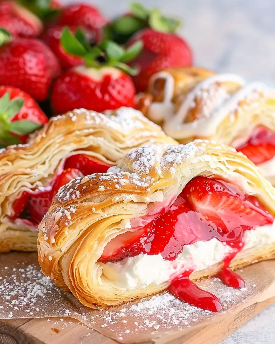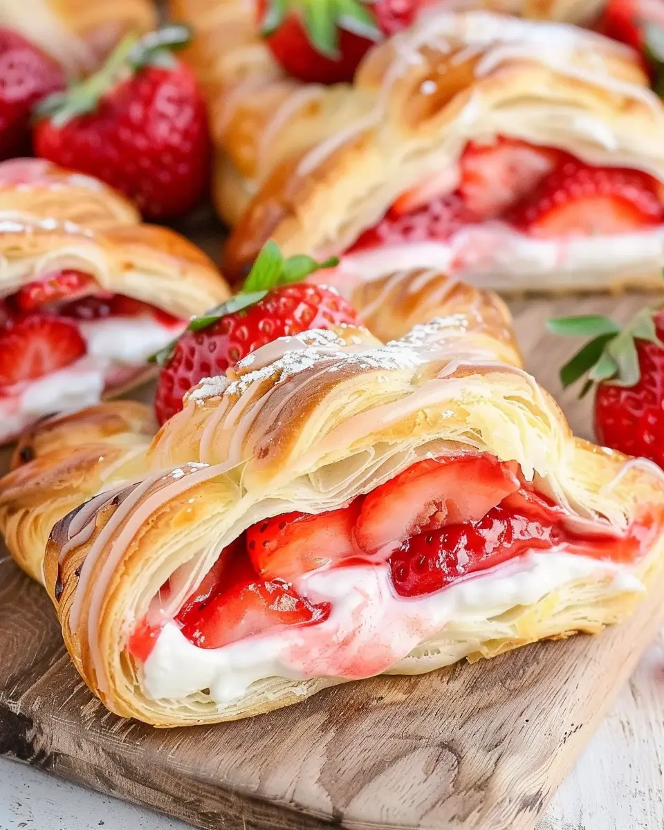 Imagine biting into a flaky, golden pastry that cradles a smooth cream cheese filling, balanced perfectly with a layer of fresh strawberries. The contrast of textures—crisp pastry and velvety cream cheese—is simply divine. This delightful treat has become a favorite because: