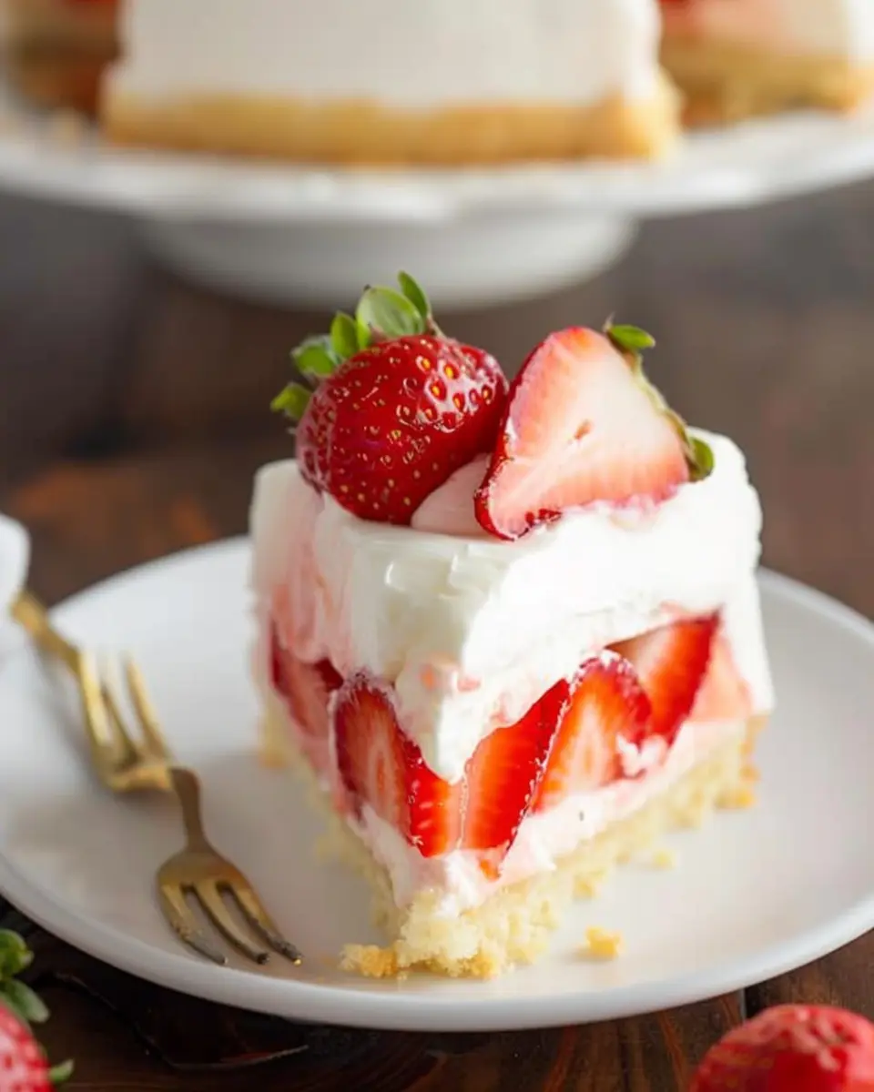 You can effortlessly impress friends with this dessert at potlucks or gatherings. It features layers that tell a story—light, fluffy cake adorned with succulent strawberries on creamy cheesecake, topped off with whipped cream. Your guests will think you spent hours crafting this masterpiece, but your secret will remain safe with us.