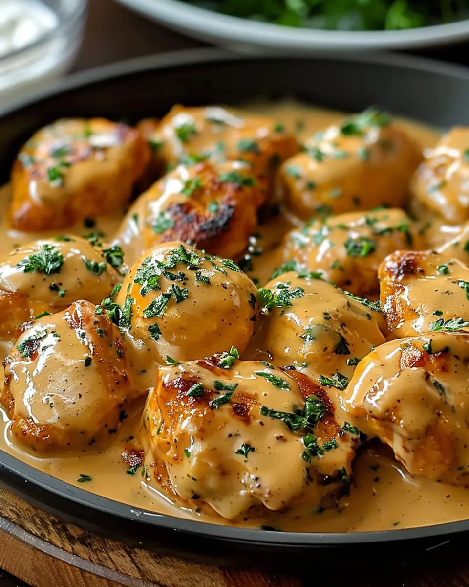 Now, return the seared chicken back to the pan, allowing it to bask in that luscious sauce. Make sure the chicken is well coated and simmer for an additional 5-10 minutes. This step not only helps the chicken absorb all the flavors but also ensures it remains juicy and tender.