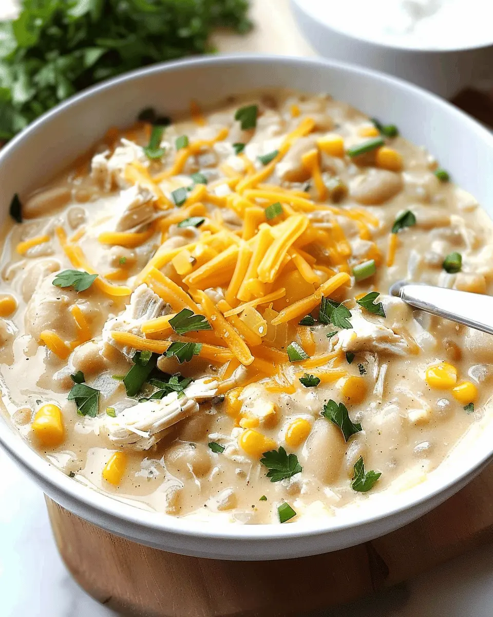 To truly make your White Chicken Chili shine, think outside the box with toppings. Consider adding diced avocado for creaminess and fresh cilantro for a herbal lift.